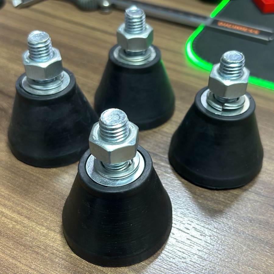 Calço de borracha para nivelamento e isolação de vibração de equipamentos mecânicos em geral.