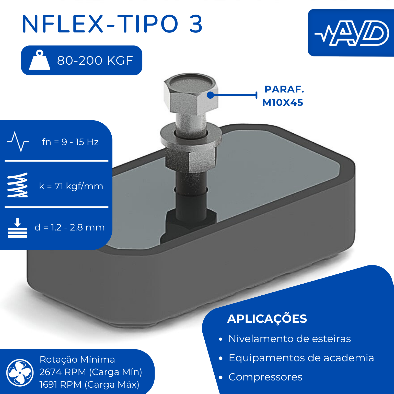Calço de borracha para nivelamento e isolação de vibração de equipamentos mecânicos em geral.